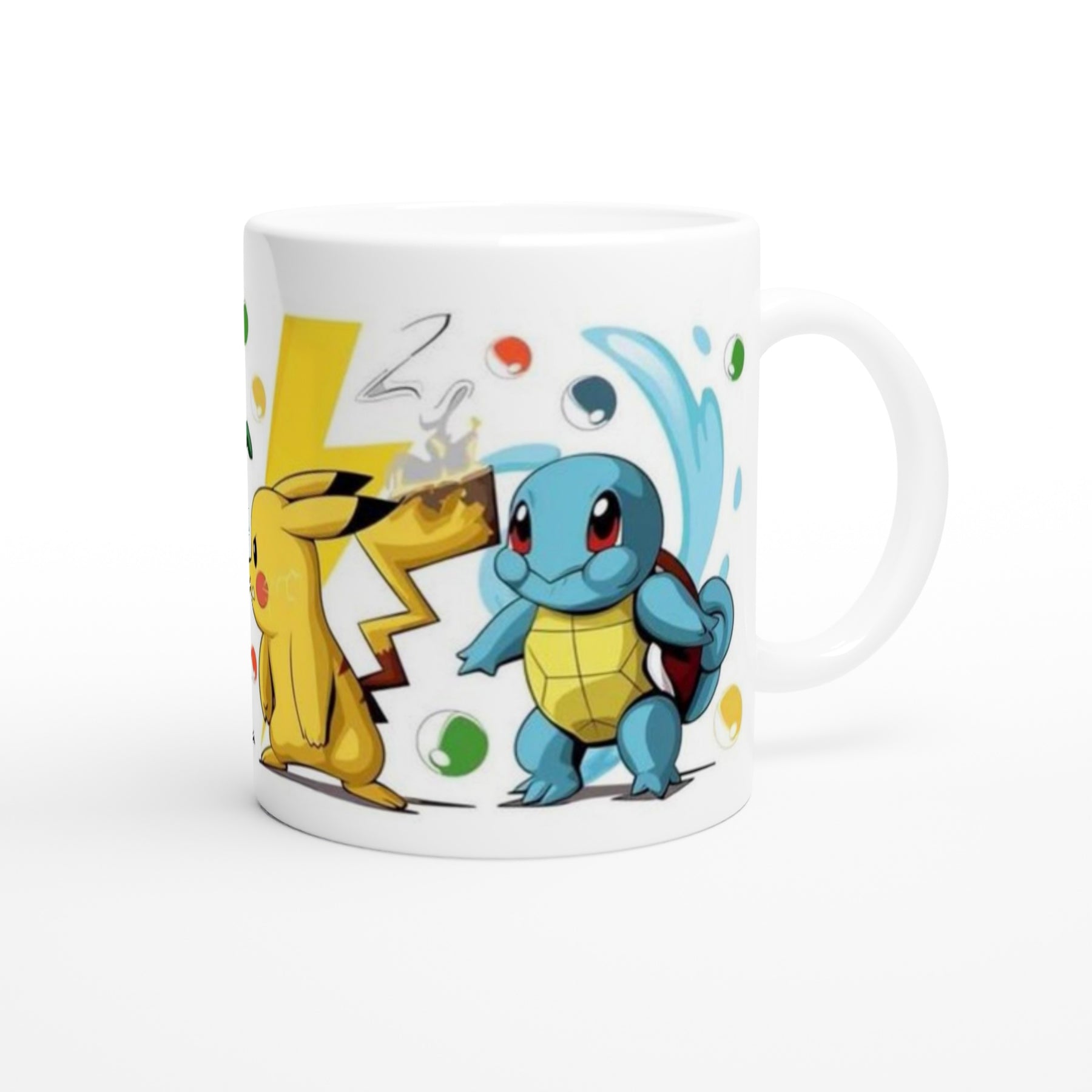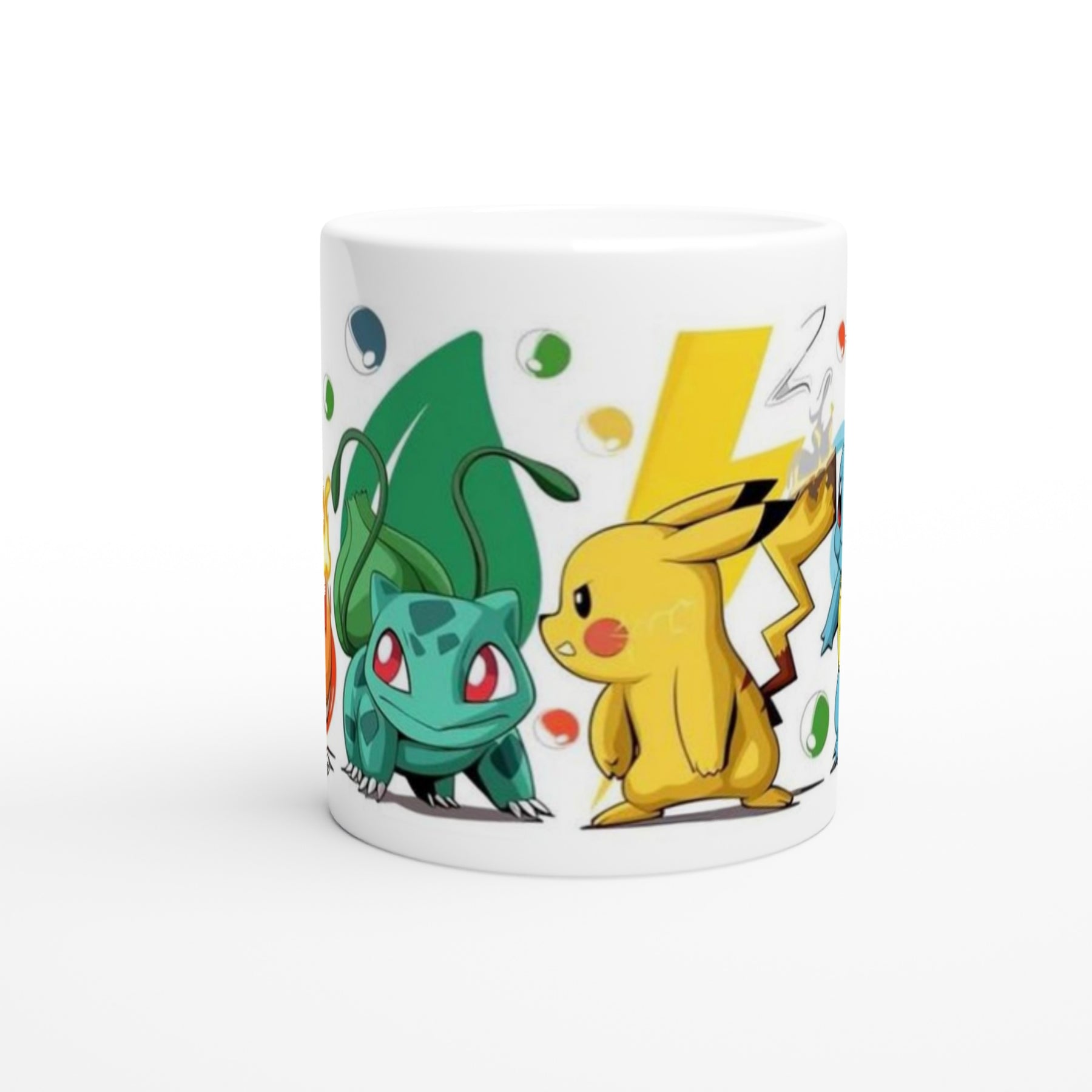 This premium 11oz ceramic mug features vibrant, high-resolution artwork showcasing Pikachu, Charmander, Bulbasaur, and Squirtle — a perfect choice for fans who appreciate both nostalgia and clean, modern design.