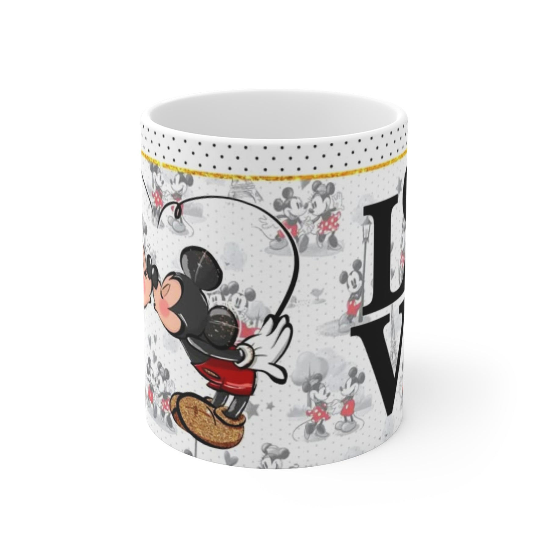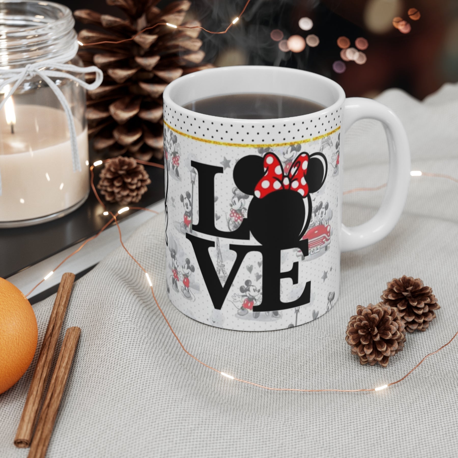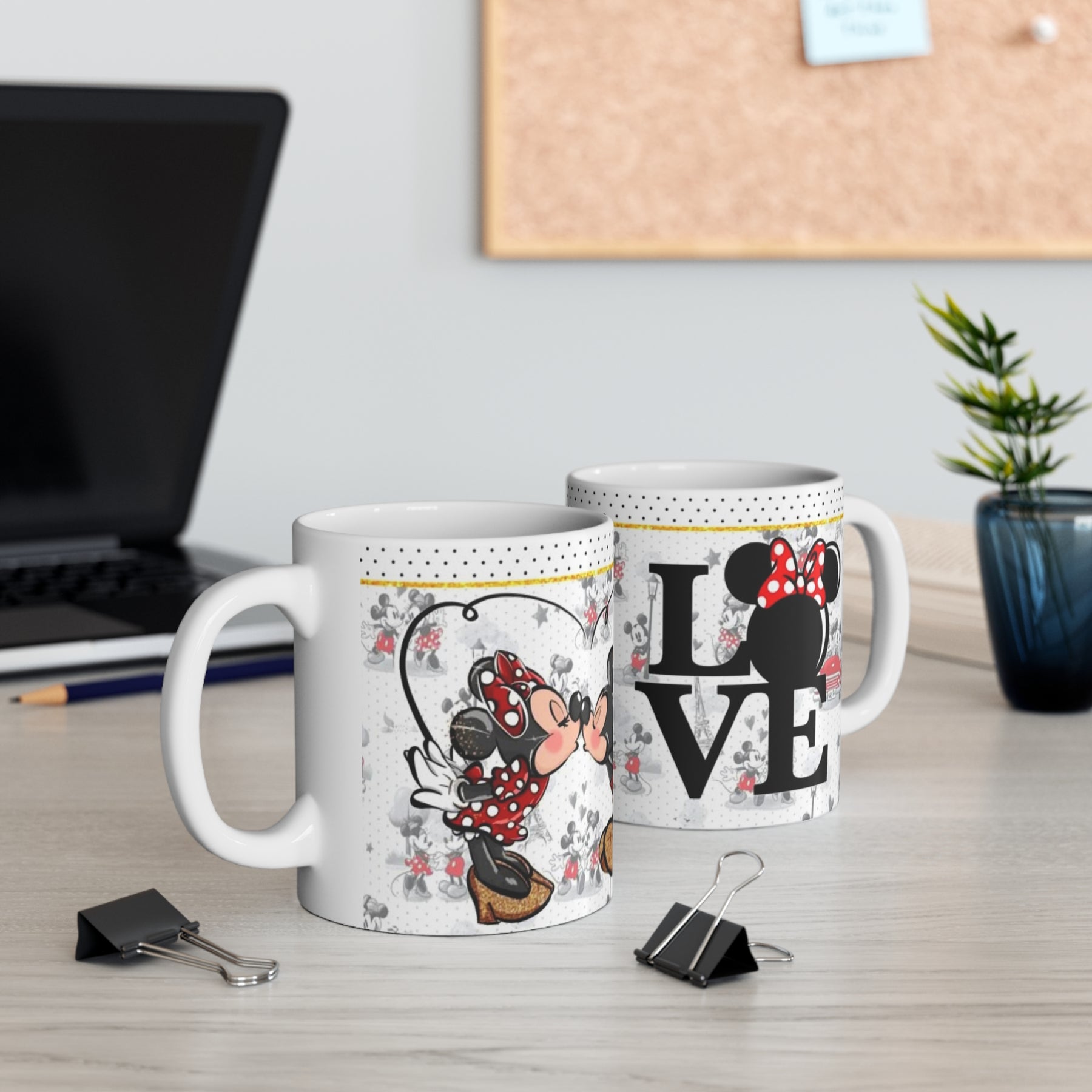 A charming 11oz ceramic mug featuring an original cartoon couple illustration, created as a decorative, romantic design and not associated with any brand, franchise, or copyrighted characters.